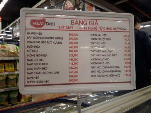 Giá thịt lợn ở VinMart và các siêu thị khác đã trở thành một đề tài được nhiều người quan tâm, đặc biệt là khi so với các chợ dân sinh. Nhìn chung, thịt ở các siêu thị thường đắt hơn khoảng 30-40%. Chẳng hạn, giá sườn heo tại VinMart lên tới 305k/kg, điều này khiến nhiều người cảm thấy bất ngờ, nhất là khi so sánh với những loại thịt khác như chân giò rút xương chỉ có 115.122 đồng/kg hay thịt heo xay chỉ 99.900 đồng/kg.