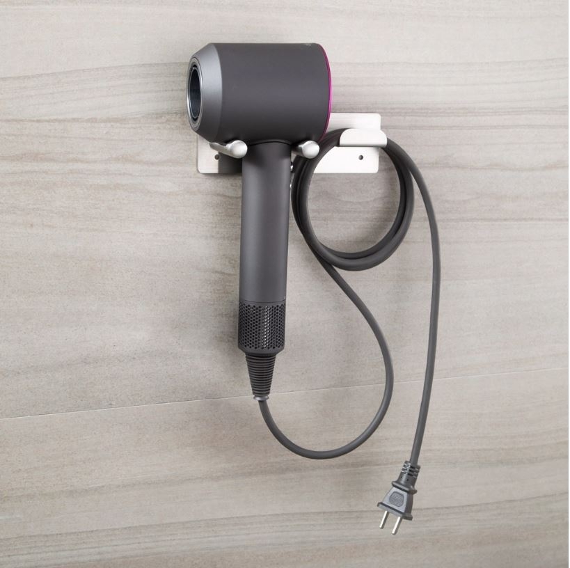 Ngoài ra, giá treo còn được trang bị thêm móc để treo phích cắm của máy sấy, giúp không gian gọn gàng, ngăn nắp hơn. Không chỉ là một vật dụng hữu ích, mà giá treo này còn góp phần làm đẹp không gian sống của bạn với bề ngoài sáng bóng và hiện đại.