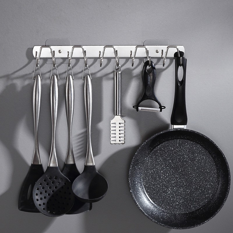 Nếu bạn sở hữu một chiếc bếp nhỏ, một mẫu giá treo tường với 7 móc treo di động sẽ là sự lựa chọn lý tưởng. Để giữ cho không gian bếp luôn sạch sẽ, ưu tiên lựa chọn những sản phẩm từ chất liệu bền bỉ và dễ vệ sinh, như inox 304 hay thép mạ crom.