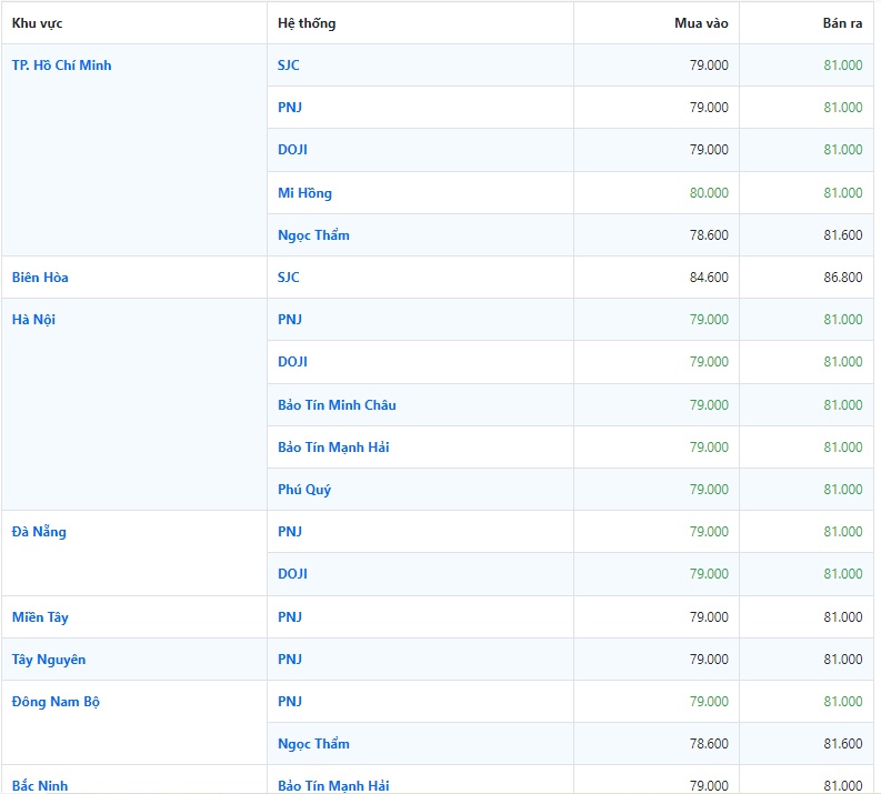 Cụ thể, giá vàng miếng SJC tại các công ty lớn được niêm yết với mức chênh lệch mua vào và bán ra khoảng 2 triệu đồng mỗi lượng. Giá vàng nhẫn và nữ trang cũng duy trì ổn định, không có sự thay đổi đáng kể, tạo sự yên tâm cho người mua và nhà đầu tư.
