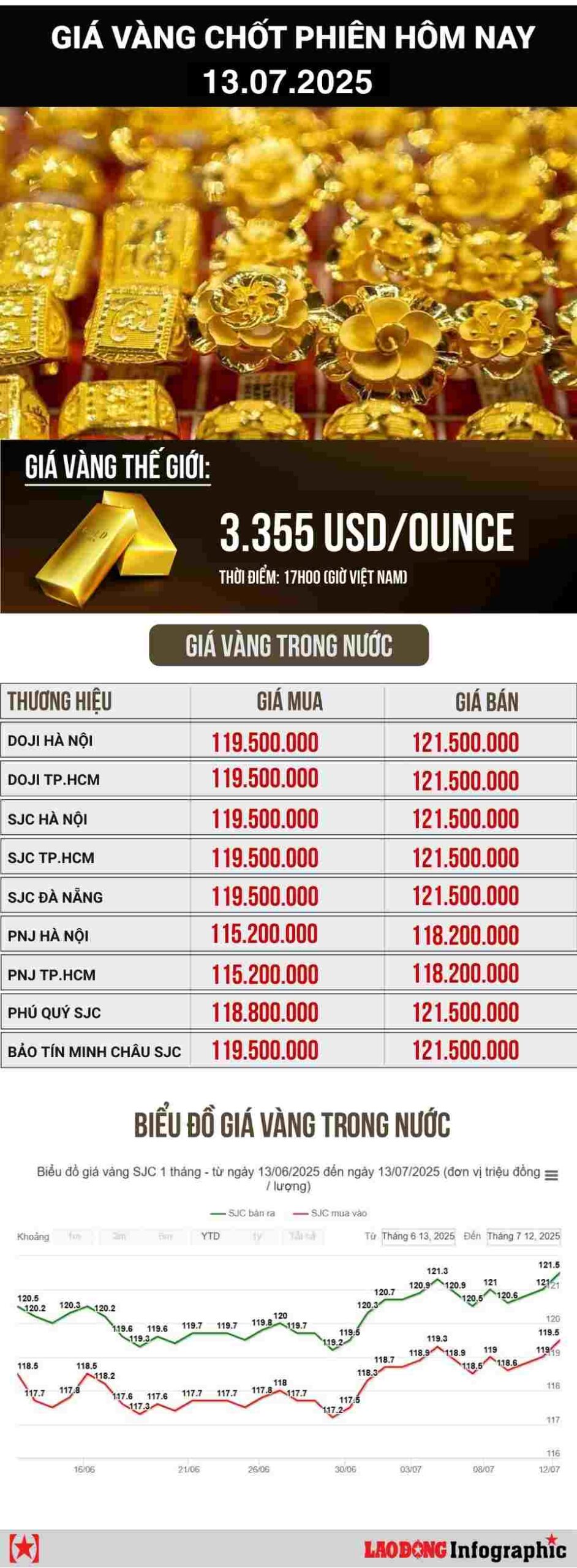 Tuy nhiên, tại thị trường trong nước, giá vàng tiếp tục giảm khoảng 500.000 đồng mỗi lượng, xuống còn khoảng 120,6 triệu đồng/lượng bán ra. Mức giảm này diễn ra liên tục trong những ngày gần đây, phản ánh sự điều chỉnh theo xu hướng giảm của thị trường nội địa dù giá vàng thế giới có phần hồi phục.