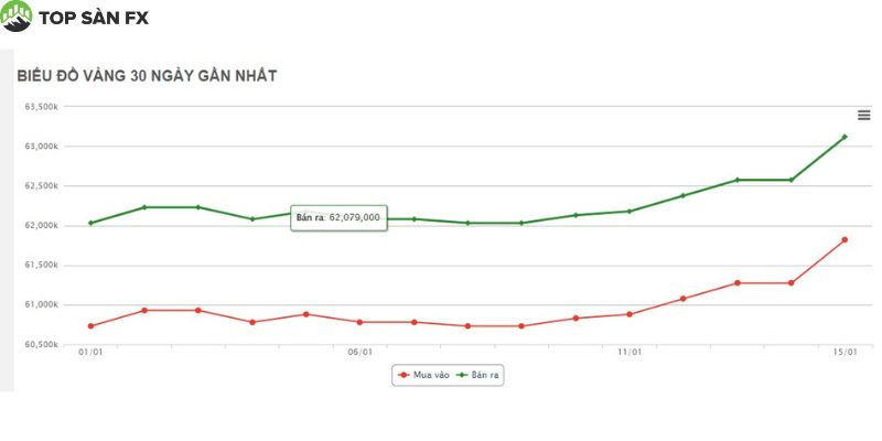 Thông qua biểu đồ, người dùng có thể dễ dàng nắm bắt xu hướng tăng giảm của giá vàng, từ đó đưa ra quyết định mua bán hợp lý. Ví dụ, giá vàng SJC 5 chỉ hiện nay dao động quanh mức 11.916.000 đồng mua vào và 12.118.000 đồng bán ra, còn vàng nhẫn SJC 99,99% có giá mua vào khoảng 11.466.000 đồng và bán ra 11.716.000 đồng.