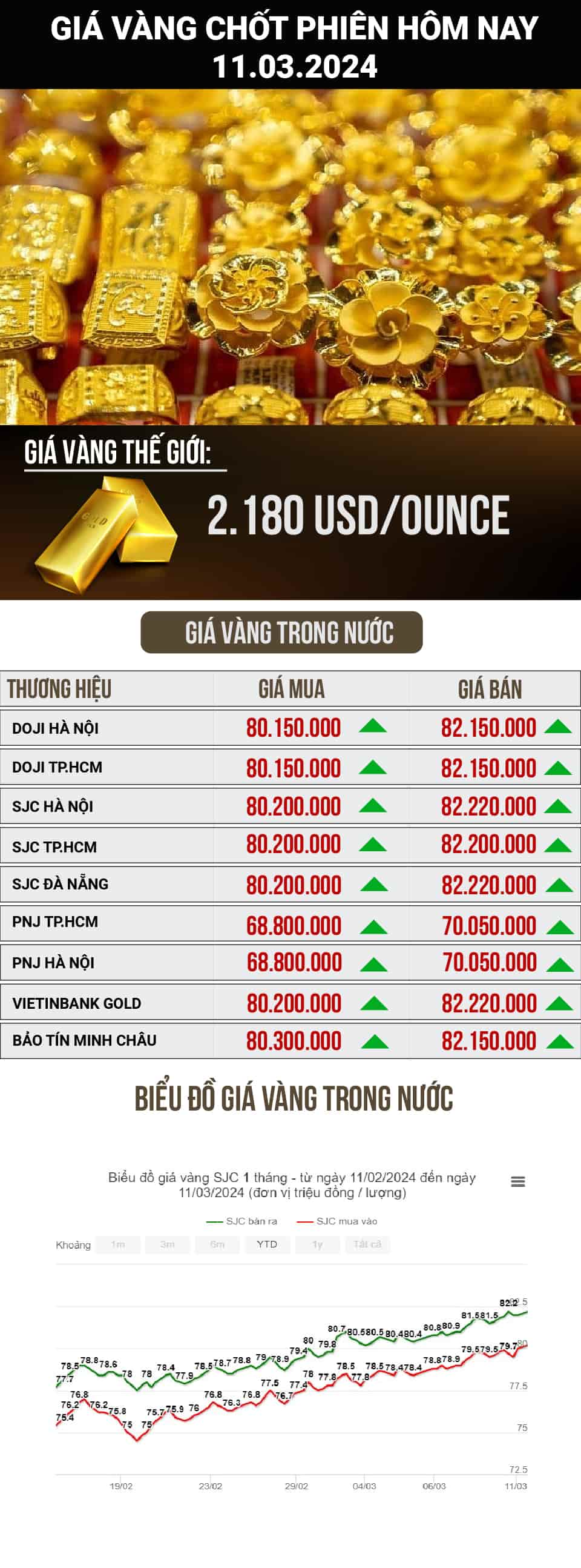 Việc nắm bắt thông tin giá vàng hàng ngày không chỉ giúp các nhà đầu tư đưa ra quyết định hợp lý mà còn giúp người tiêu dùng hiểu rõ hơn về xu hướng thị trường. Hãy thường xuyên cập nhật bảng giá để không bỏ lỡ cơ hội tốt trong việc đầu tư hoặc mua sắm.