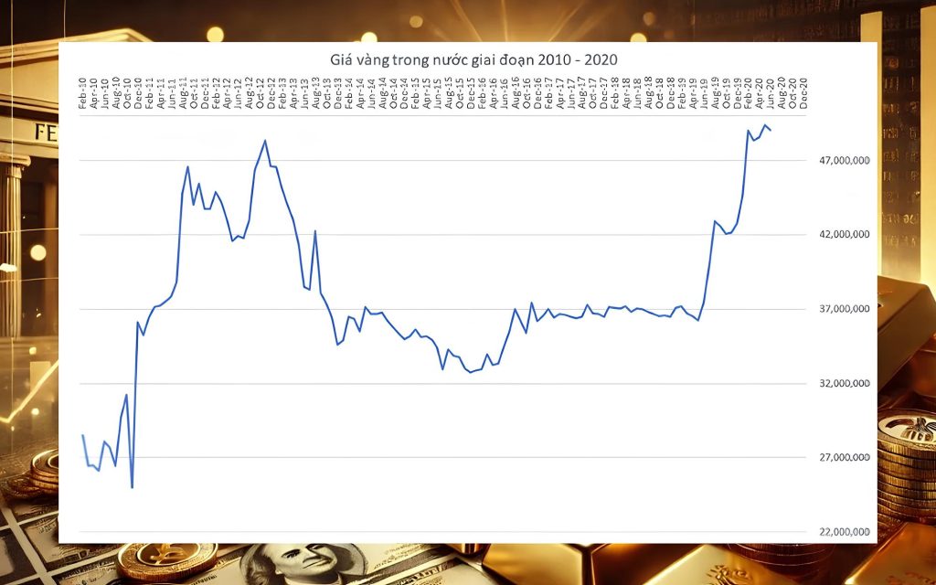 Trong 20 năm qua, giá vàng tại Việt Nam có xu hướng tăng rõ rệt với nhiều cột mốc quan trọng. Giai đoạn 2000-2015, giá vàng tăng dần từ khoảng 814.000 đồng/chỉ năm 2004 lên mức trên 35 triệu đồng/lượng vào năm 2016, duy trì ổn định quanh 35-37 triệu đồng/lượng đến năm 2018.