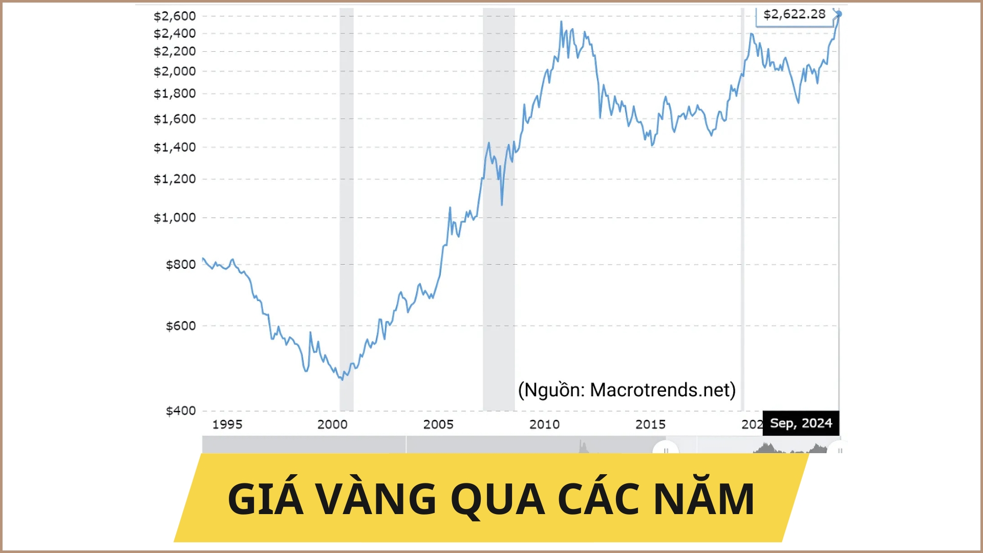 Trong bối cảnh kinh tế toàn cầu không ngừng biến động, giá vàng đã trở thành một trong những chỉ số quan trọng phản ánh sức khỏe của nền kinh tế. Từ những năm 2000 đến nay, giá vàng đã trải qua nhiều thăng trầm, không chỉ ở Việt Nam mà còn trên thị trường quốc tế. Việc theo dõi biến động giá vàng không chỉ giúp nhà đầu tư định hướng chiến lược tài chính mà còn là tín hiệu cho những thay đổi trong chính sách tiền tệ và tình hình kinh tế. Bài viết này sẽ cung cấp cái nhìn tổng quan về giá vàng qua các giai đoạn, từ 30 năm trở lại đây cho đến những diễn biến gần đây nhất trong 1 năm qua.