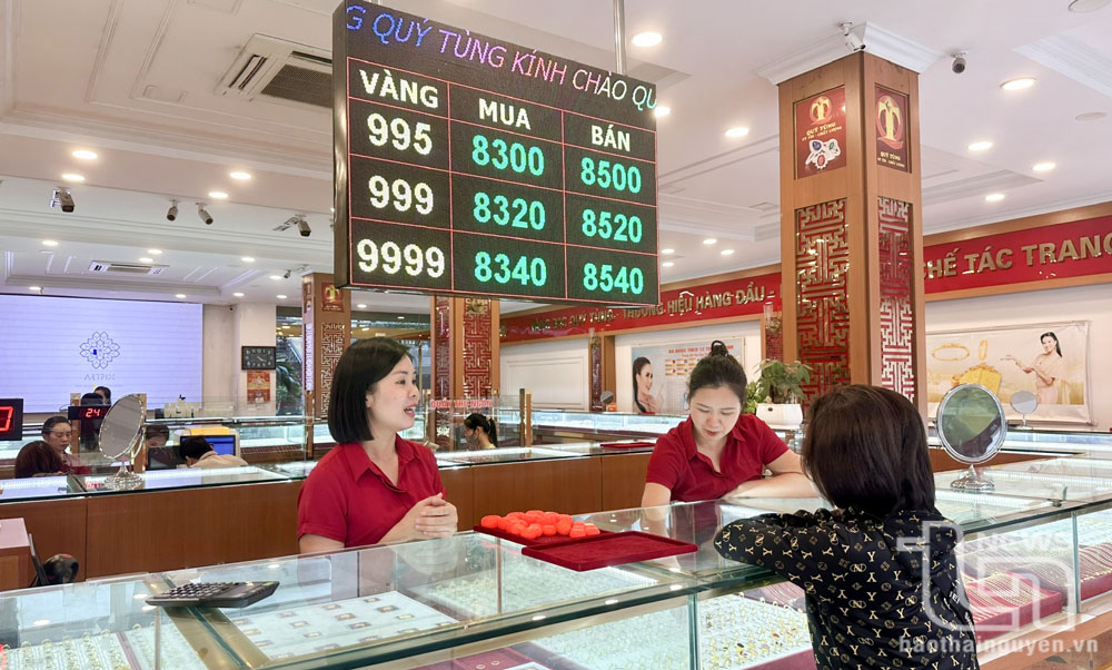 So với tuần trước, giá vàng trong nước đã tăng mạnh, đặc biệt vàng 9999 tăng khoảng 1,7 triệu đồng/lượng, trong khi vàng nhẫn và nữ trang cũng tăng từ 458 nghìn đến 1,1 triệu đồng/lượng tùy loại. Tuy nhiên, tại Thái Nguyên, giao dịch vàng không quá sôi động do nhà đầu tư cần vốn lớn và kinh nghiệm để tránh rủi ro, nhất là khi chênh lệch mua bán thường trên dưới 2 triệu đồng/lượng.