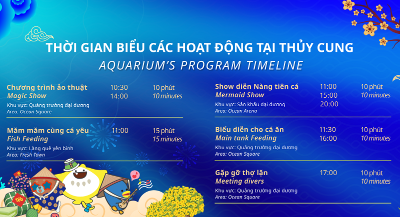 Khi mua vé, bạn sẽ được tham quan các khu vực trong thủy cung trong suốt thời gian hoạt động từ 9:30 đến 22:00 hàng ngày. Tuy nhiên, cần lưu ý là giá vé không bao gồm các dịch vụ phụ trợ khác.
