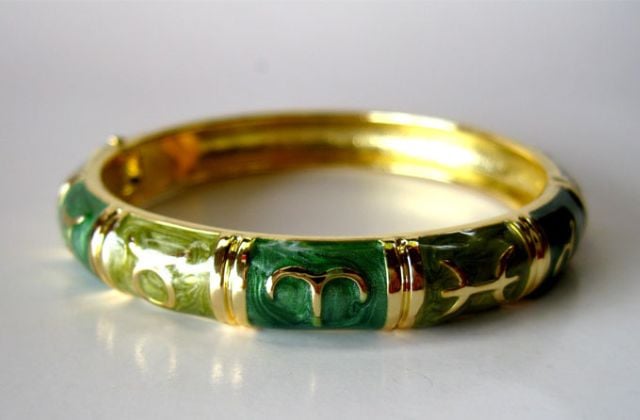Để phân biệt vòng cẩm thạch thật và giả, trước hết cần quan sát màu sắc của vòng. Vòng cẩm thạch thật thường có màu sắc nhẹ nhàng, tự nhiên với các đường vân uyển chuyển, không quá rực rỡ hay bóng loáng. Ngược lại, vòng giả thường có màu sắc sặc sỡ, bóng bẩy do được nhuộm màu hoặc ép nhựa lên bề mặt.