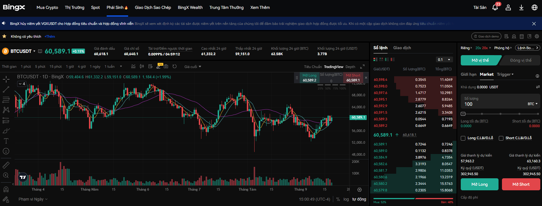 Điều này có nghĩa là nếu bạn cảm thấy thị trường vẫn thuận lợi, bạn có thể giữ vị thế của mình liên tục, miễn là tài khoản đủ ký quỹ để tránh bị thanh lý. Tuy nhiên, việc giữ lệnh lâu cũng đồng nghĩa với việc bạn phải chịu phí tài chính (funding fee) định kỳ, nên cần cân nhắc kỹ trước khi quyết định giữ lệnh trong thời gian dài.
