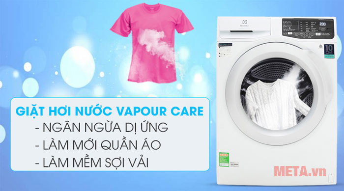 Giặt hơi nước thì khác hẳn. Máy tạo hơi nóng từ nước sôi, phun trực tiếp vào sợi vải, giúp xà phòng thấm sâu mà không cần lượng lớn. Bạn chỉ dùng ít xà phòng hơn, vì hơi nước làm mềm vết bẩn trước, tăng hiệu quả làm sạch lên gấp bội.