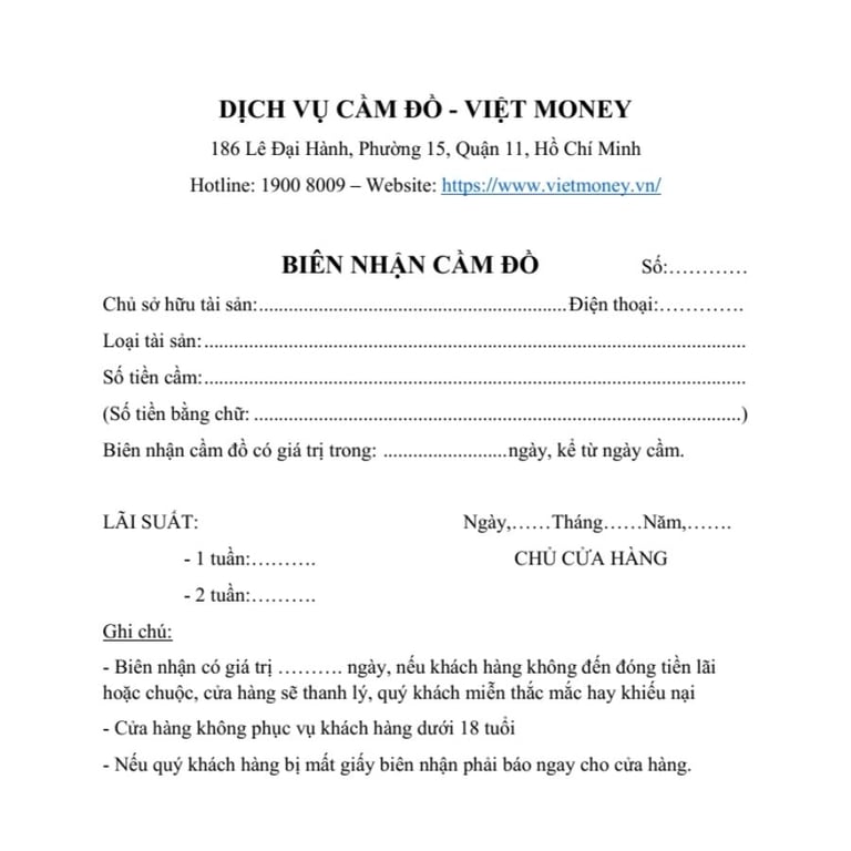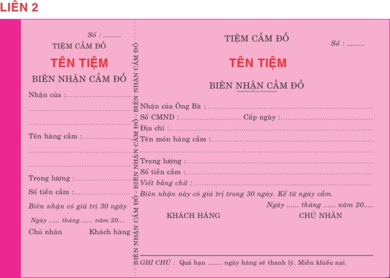 Khi bạn đến cầm đồ, chủ tiệm sẽ yêu cầu bạn cung cấp giấy tờ chứng nhận quyền sở hữu tài sản cầm cố và những giấy tờ liên quan khác. Điều này nhằm bảo vệ quyền lợi cho cả bên cầm đồ và bên cho vay. Mẫu phiếu cầm đồ hiện tại rất đa dạng, nhưng thường được thiết kế đơn giản và dễ hiểu, giúp mọi người dễ dàng nắm bắt nội dung.