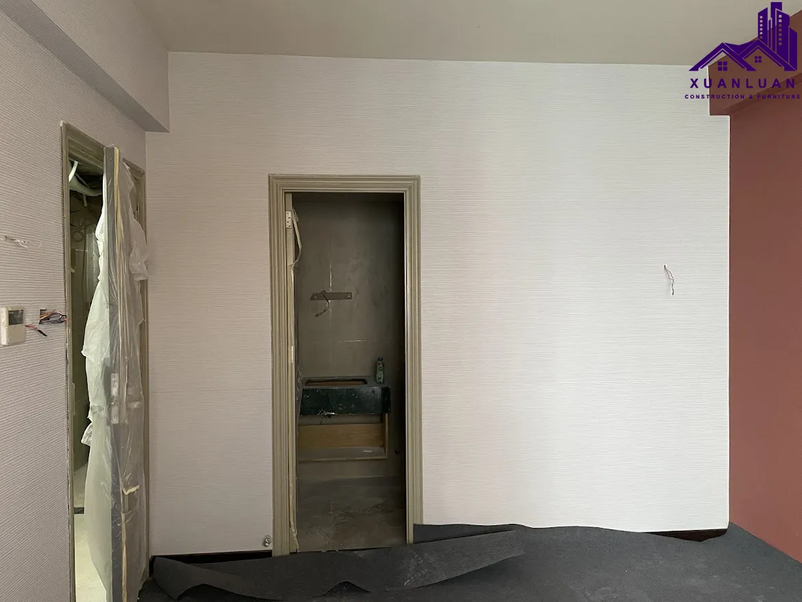 Quy trình thi công của chúng tôi rất chuyên nghiệp và nhanh chóng. Đầu tiên, đội ngũ thợ giỏi sẽ đo đạc chiều cao tường một cách chính xác, sau đó di chuyển đồ đạc để đảm bảo quá trình thi công diễn ra thuận lợi nhất. Với giá cả hợp lý, dịch vụ thi công giấy dán tường của chúng tôi luôn tạo sự hài lòng cho khách hàng.