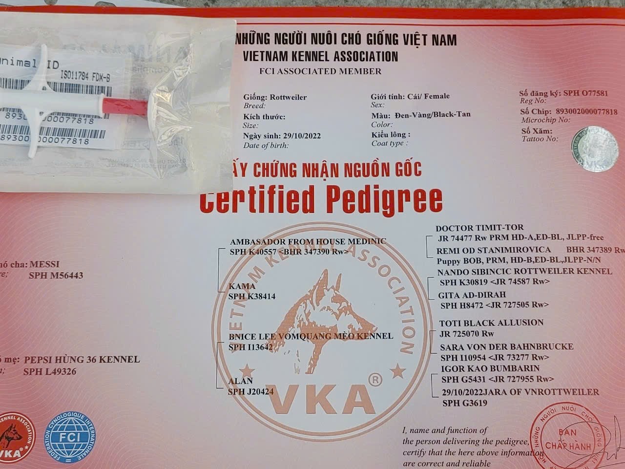 Giấy FCI không được cấp trực tiếp từ FCI mà qua các hiệp hội chó giống quốc gia thành viên, như VKA ở Việt Nam. Nó giúp xác nhận chú chó của bạn là “xịn” thật sự, tránh mua phải hàng giả mạo danh thuần chủng. Nhiều người mua chó hay kiểm tra giấy này để yên tâm về sức khỏe, giống nòi và giá trị kinh tế.