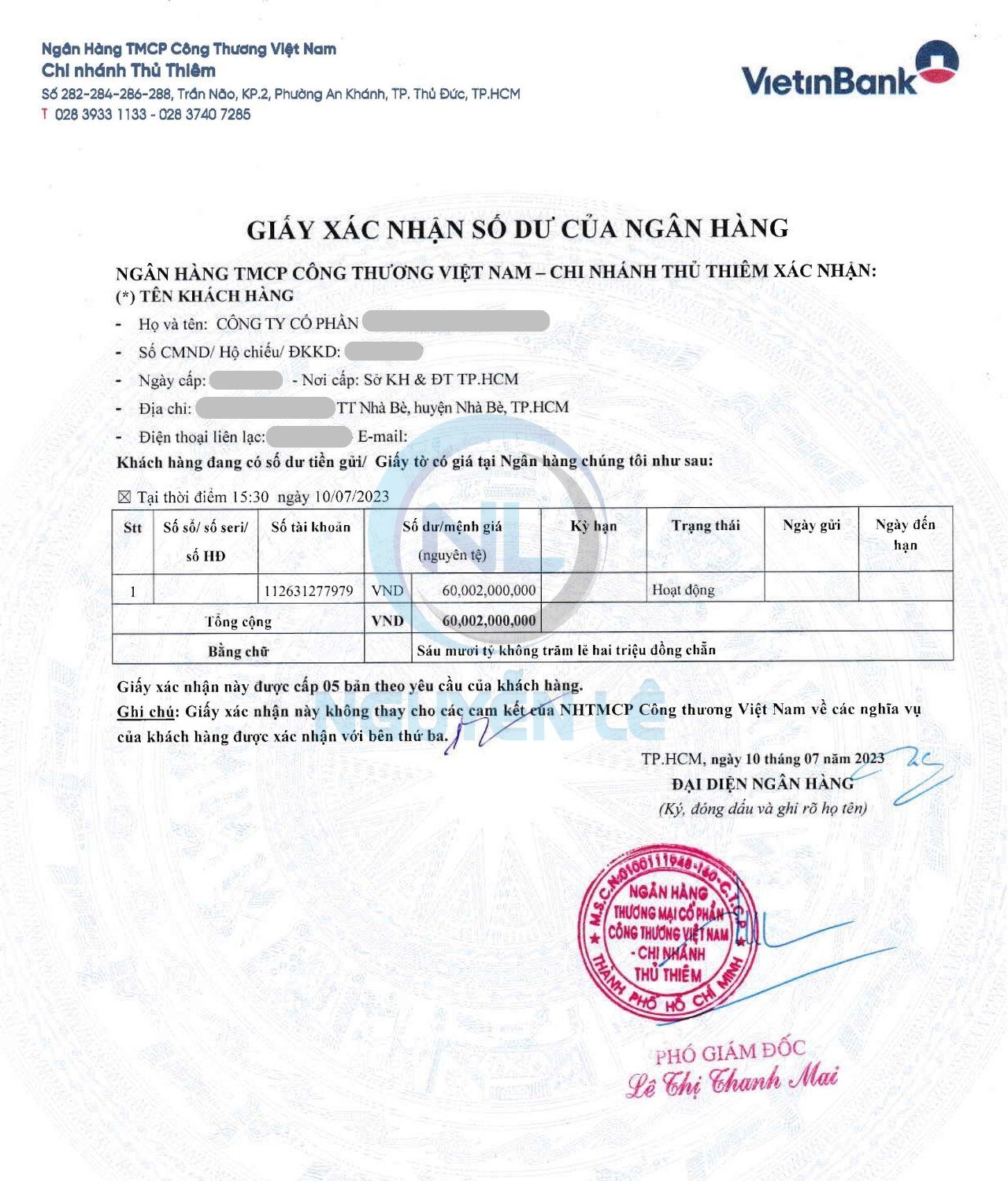 Giấy xác nhận số dư tài khoản BIDV là tài liệu chính thức được ngân hàng BIDV cung cấp, nhằm xác minh số tiền tồn tại trong tài khoản của khách hàng tại thời điểm yêu cầu. Tài liệu này thường được sử dụng để chứng minh khả năng tài chính trong các giao dịch hoặc thủ tục hành chính cần thiết.