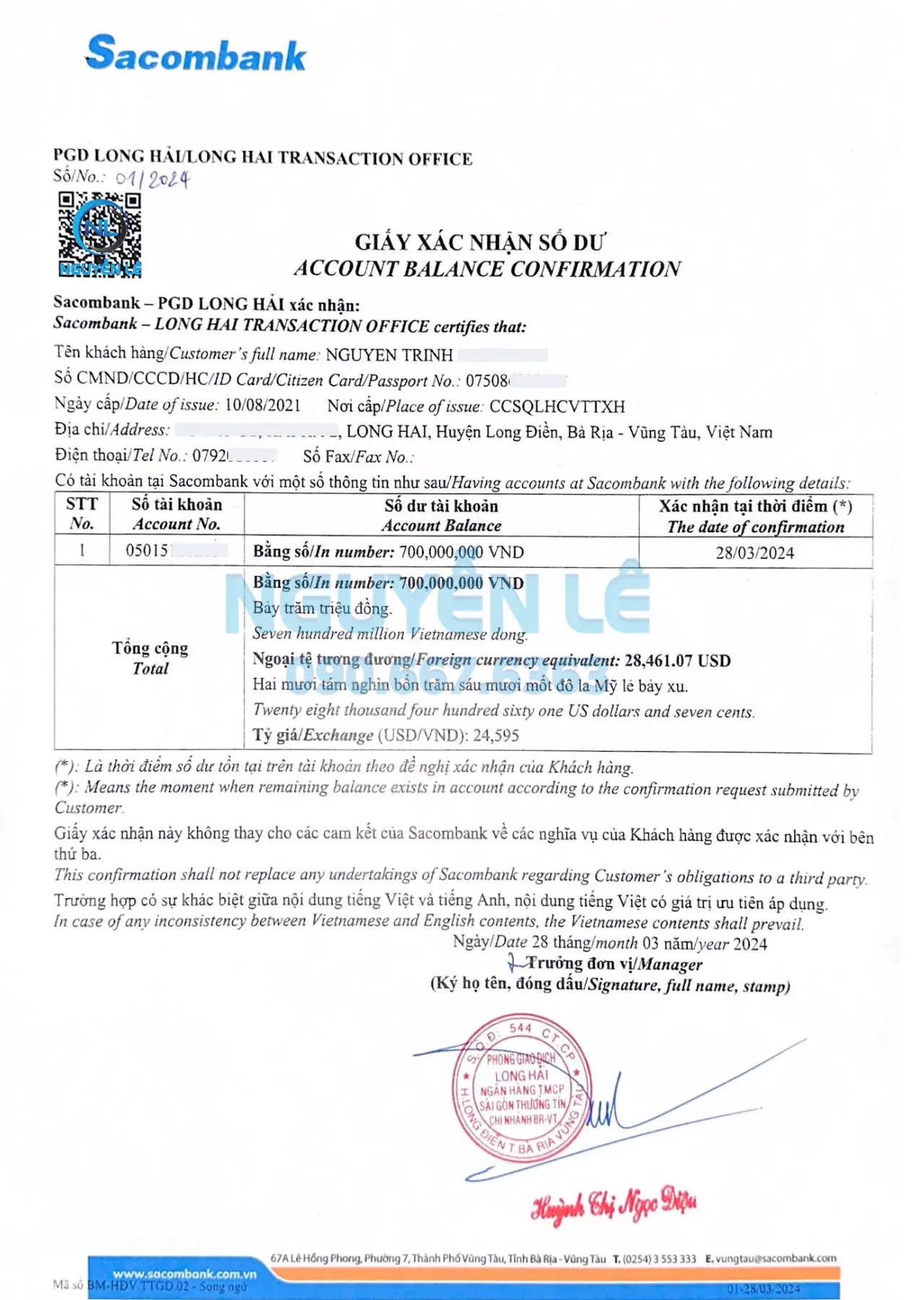 Thủ tục để xin giấy xác nhận số dư khá đơn giản và nhanh chóng, thường chỉ mất từ 10 đến 15 phút tại các ngân hàng trên toàn quốc. Khách hàng chỉ cần đến quầy giao dịch, yêu cầu cấp giấy và cung cấp thông tin về tài khoản cần xác nhận. Giấy xác nhận số dư này có giá trị pháp lý và được ngân hàng cam kết đảm bảo tính chính xác.