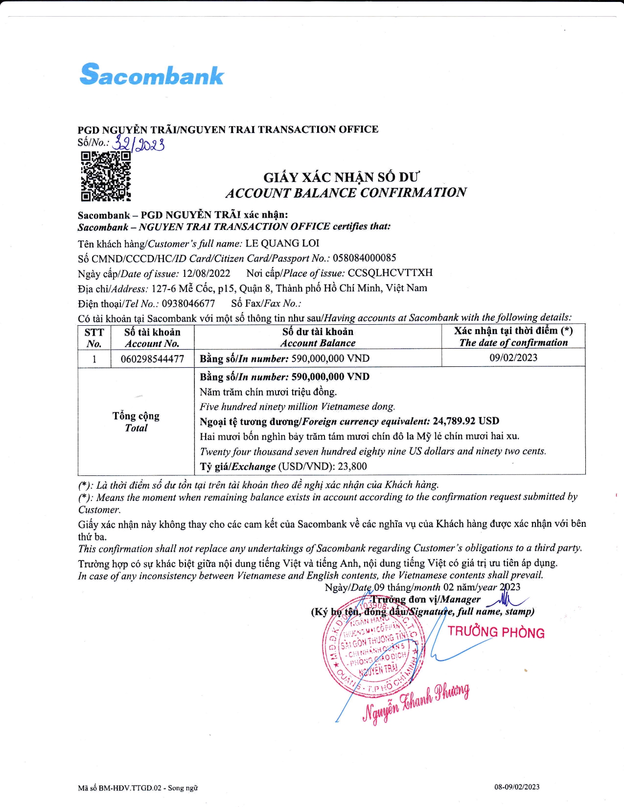 Đặc biệt, giấy xác nhận số dư thường phải được phát hành dưới dạng bản song ngữ Anh – Việt để đáp ứng yêu cầu của cơ quan lãnh sự. Đây là một phần thiết yếu trong việc chứng minh khả năng tài chính khi bạn xin visa, giúp xác nhận rằng bạn có đủ nguồn lực để trang trải chi phí trong thời gian lưu trú ở nước ngoài.