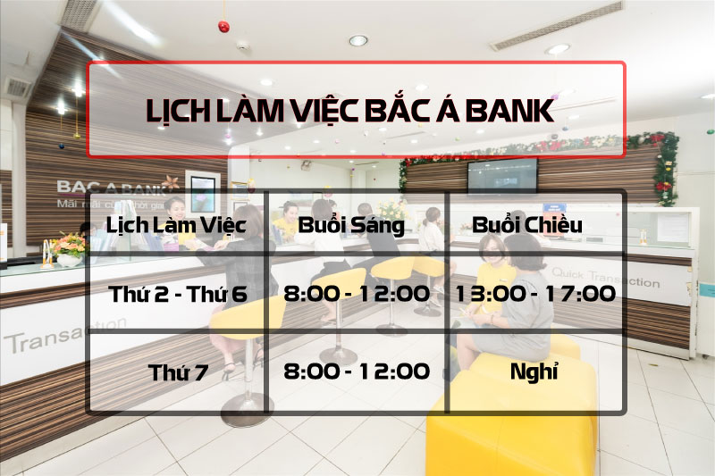 Khi tìm kiếm một ngân hàng đáng tin cậy để gửi gắm tài chính, giờ làm việc luôn là yếu tố quan trọng mà nhiều người quan tâm. Đối với những người bận rộn, việc nắm rõ lịch làm việc của ngân hàng sẽ giúp chúng ta dễ dàng sắp xếp thời gian đến giao dịch hơn. Hôm nay, hãy cùng nhau khám phá giờ làm việc của Bắc Á Bank, một trong những ngân hàng nổi tiếng với dịch vụ tận tình và chuyên nghiệp. Hy vọng rằng thông tin này sẽ giúp bạn có những trải nghiệm tốt nhất khi tới ngân hàng!
