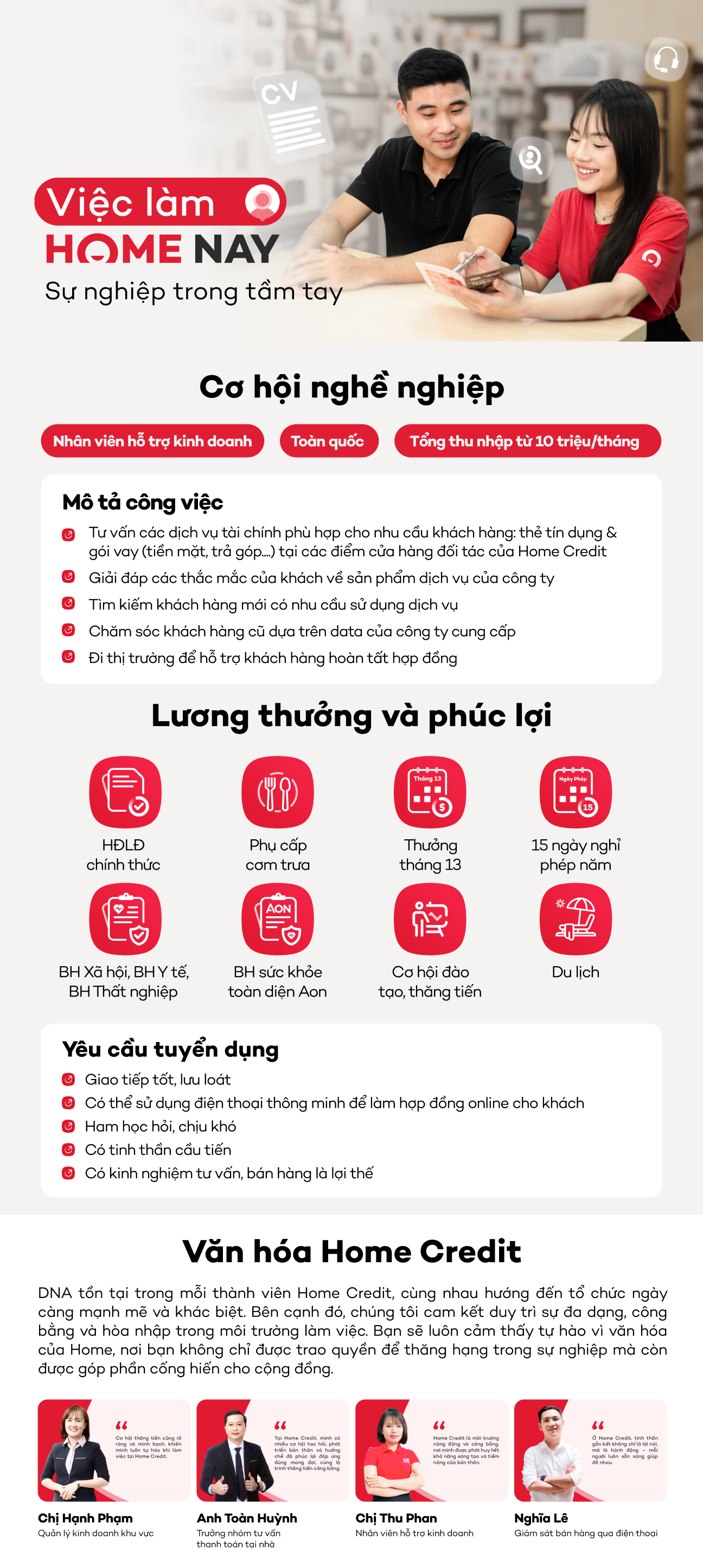 Home Credit đã và đang trở thành một trong những đơn vị tài chính hàng đầu tại Việt Nam, cung cấp nhiều dịch vụ vay tài chính đa dạng cho người tiêu dùng. Để hỗ trợ khách hàng tốt hơn, công ty đã thiết lập giờ làm việc linh hoạt, cùng với tổng đài miễn phí giúp giải đáp nhanh chóng các thắc mắc. Bài viết này sẽ cung cấp thông tin chi tiết về giờ làm việc của Home Credit, cách thức tra cứu hợp đồng, và những điều cần biết khi sử dụng dịch vụ của họ. Hãy cùng tìm hiểu để có những quyết định tài chính sáng suốt hơn!