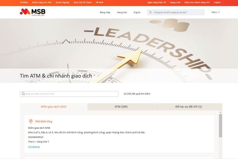 Ngoài việc đảm bảo giờ làm việc linh hoạt, MSB còn cung cấp nhiều dịch vụ hỗ trợ qua hotline 19006083 và email CSKHcanhan@msb.com.vn để giải đáp mọi thắc mắc của khách hàng. Bạn cũng có thể dễ dàng tìm kiếm các điểm ATM và chi nhánh giao dịch gần nhất để thuận tiện hơn trong việc sử dụng dịch vụ ngân hàng.