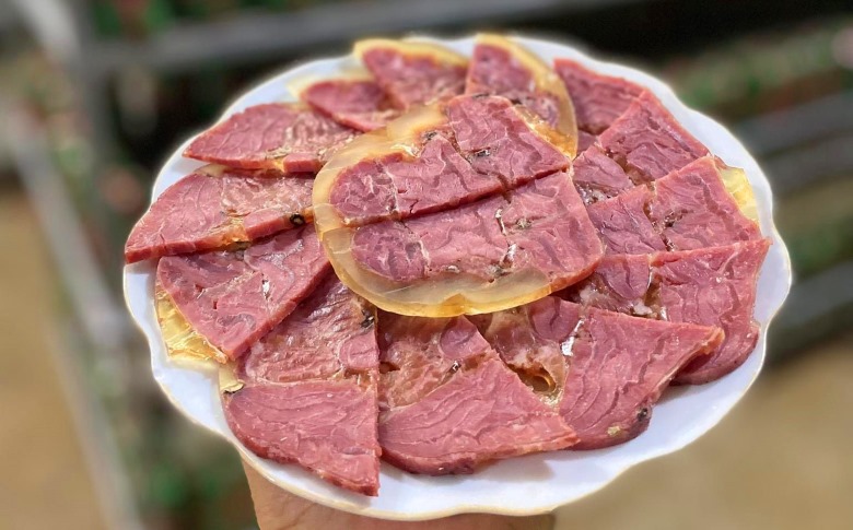 Bên cạnh đó, vẻ bề ngoài cũng nói lên nhiều điều. Giò me Nghệ An chất lượng cao có màu thịt chín hồng, không có vết màu bất thường hay mốc xám. Lớp da bên ngoài bóng loáng, có thể là vàng hoặc nâu cánh gián, tạo cảm giác hấp dẫn. Khi cắt ra, bạn sẽ thấy rõ những miếng thịt và da dính lại với nhau, một dấu hiệu của sự tươi ngon.