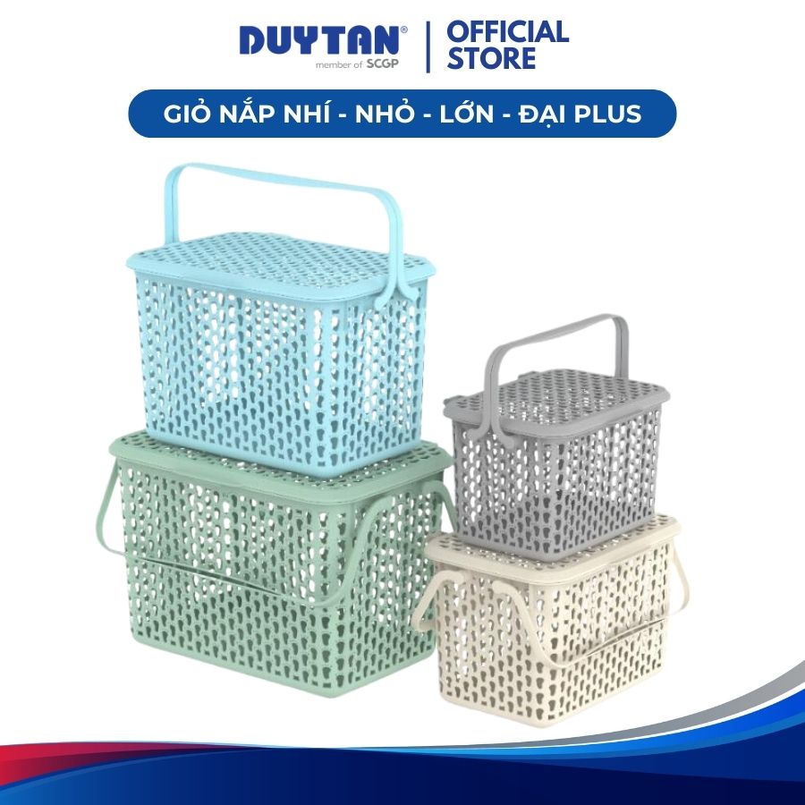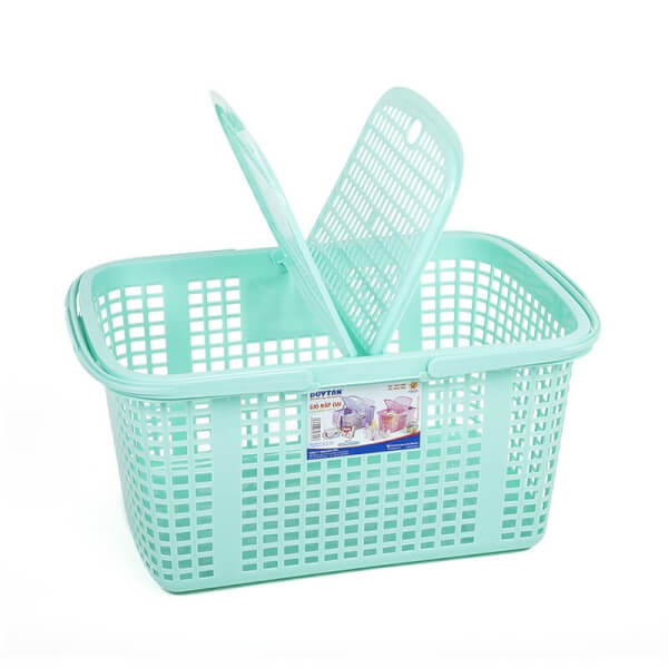 Một trong những sản phẩm nổi bật là giỏ nắp lớn 2016 Nhựa Duy Tân với kích thước rộng rãi 45x30x25cm. Giỏ này được thiết kế chắc chắn với quai cầm tiện lợi, giúp mẹ dễ dàng di chuyển. Với hai nắp đóng mở linh hoạt, mẹ có thể cất giữ và lấy đồ nhanh chóng mà không lo lắng về việc quần áo của bé bị nhăn nhúm.