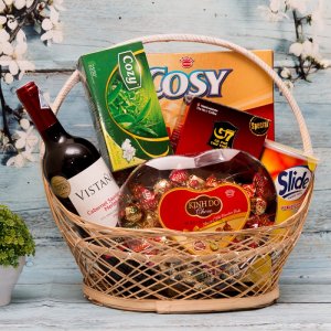 Giỏ bánh kẹo Tết 2025 đẹp và giá rẻ chỉ với 700k cũng rất được ưa chuộng, bao gồm kẹo chocolate, rượu vang, bánh Qishi, bánh Nhật, bánh quy và rất nhiều món ngon hấp dẫn khác. Không chỉ là món quà đơn thuần, giỏ quà này còn gửi gắm những lời chúc tốt đẹp nhất đến người thân.