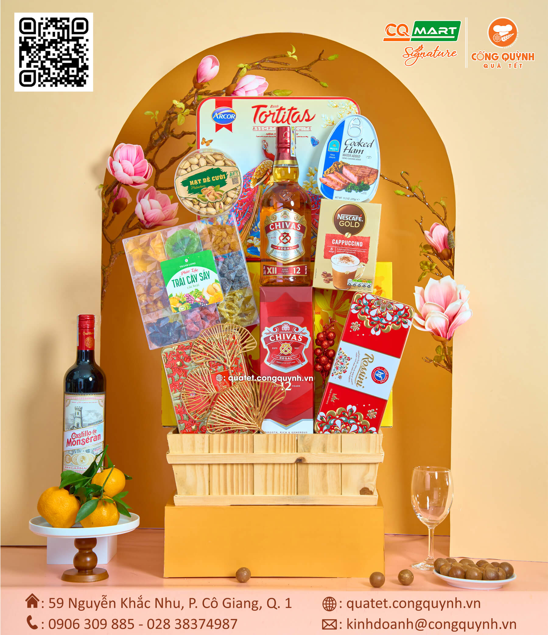 Trong mỗi giỏ quà, bạn sẽ tìm thấy những sản vật tinh hoa như vang, bánh mứt, các loại hạt, chocolate thượng hạng, và những món quà đặc sản khác. Tất cả đều được lựa chọn kỹ lưỡng để đảm bảo rằng người nhận sẽ cảm nhận được sự chăm chút từ bạn. Giá bán cho một giỏ quà đôi khi sẽ ở mức từ 490.000₫ đến 2 triệu đồng, tùy thuộc vào giá trị của từng sản phẩm bên trong.