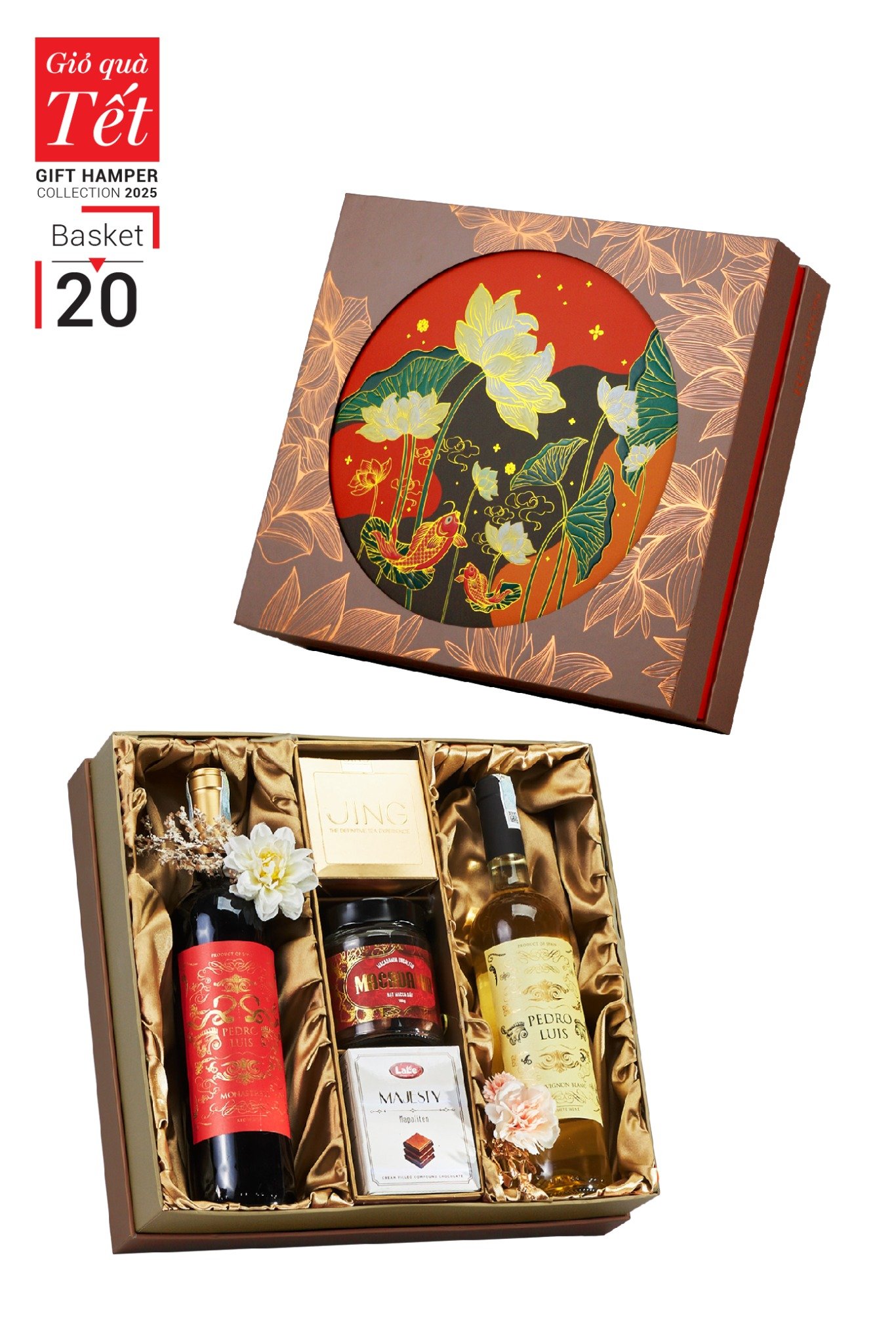 Giỏ quà Tết Hamper 2020 là lựa chọn hoàn hảo để gửi gắm tình cảm trong dịp Xuân về. Với sự kết hợp tinh tế của những món ăn đặc trưng như thịt hộp Hormel Classic, bánh quy Traou Mad và các loại socola Galler, giỏ quà mang đến không chỉ hương vị thơm ngon mà còn là biểu tượng của sự trọn vẹn, đủ đầy trong năm mới.