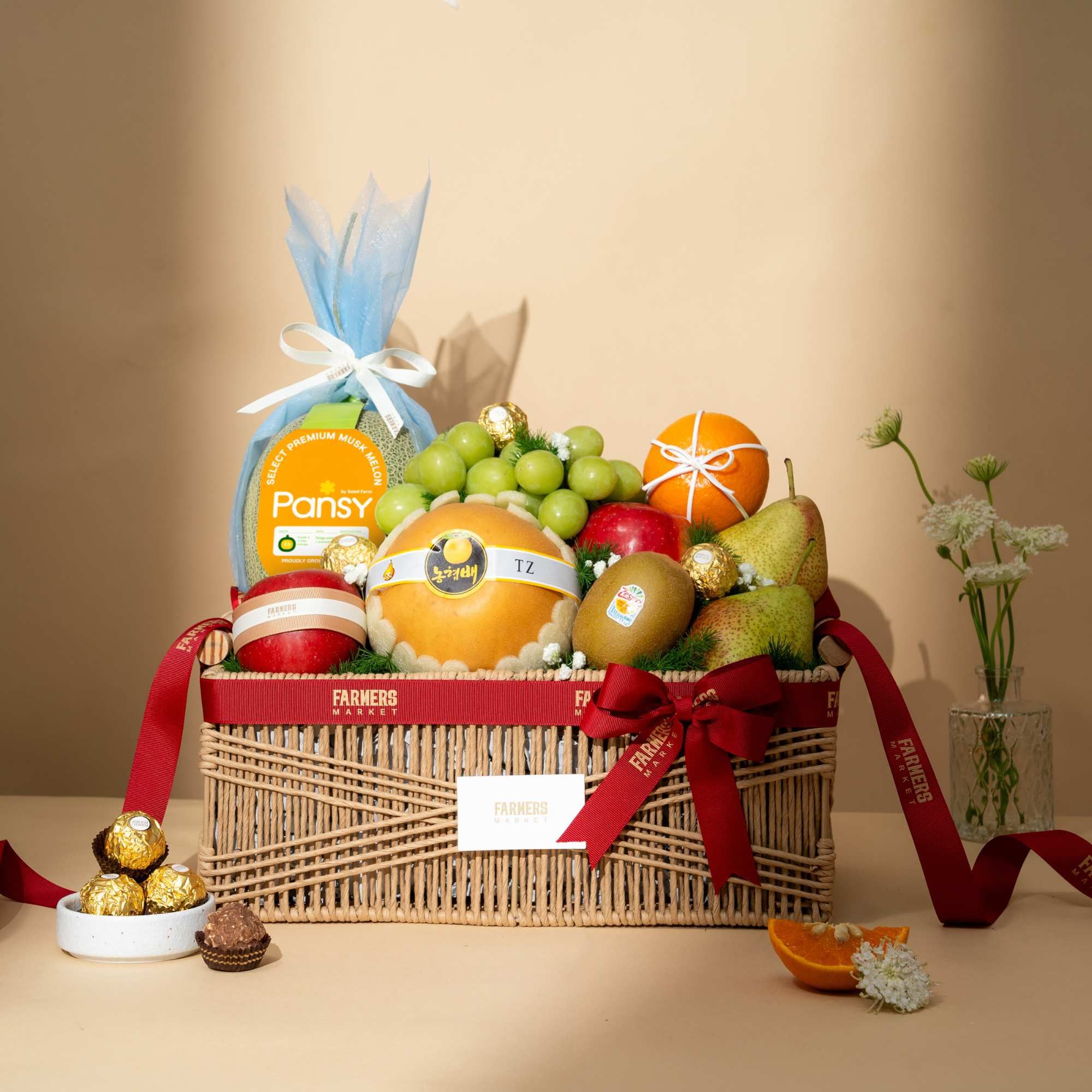 Không chỉ đẹp về hình thức, các sản phẩm tại Farmers Market còn đảm bảo chất lượng. Trái cây tươi ngon, an toàn và được nhập khẩu chính ngạch, chắc chắn sẽ làm hài lòng cả những khách hàng khó tính nhất. Các giỏ trái cây kết hợp với hoa tươi càng làm tăng thêm giá trị cho món quà của bạn.