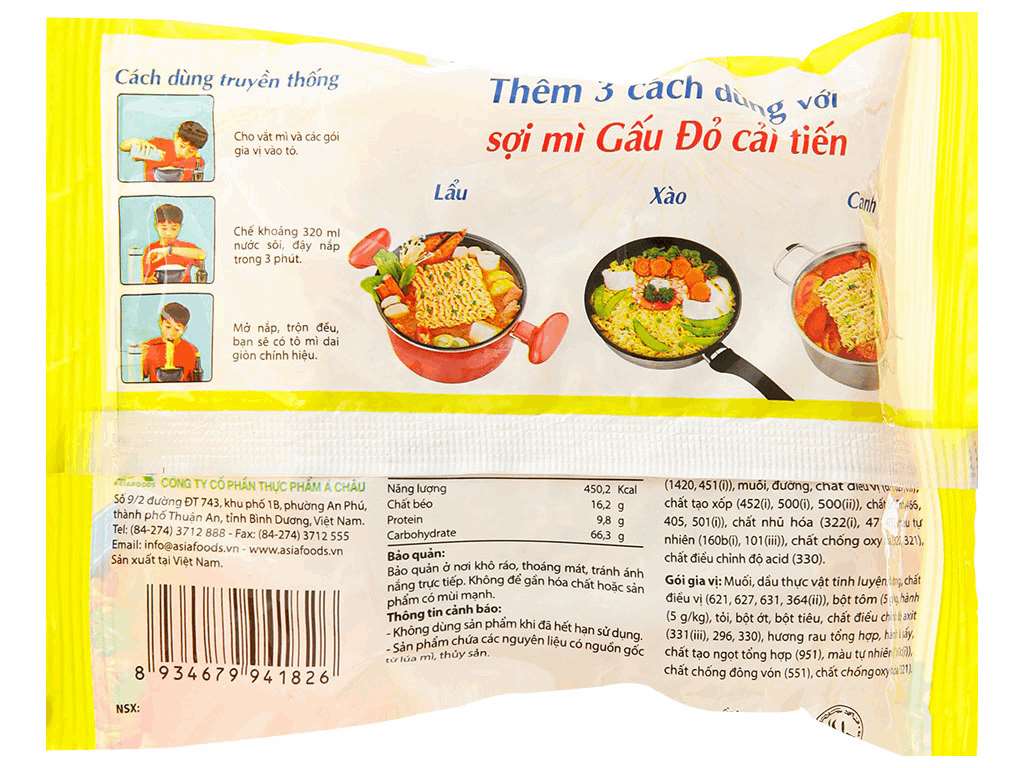 Mì Gấu Đỏ được biết đến với nhiều ưu điểm nổi bật, giúp khẳng định vị thế trong thị trường mì gói hiện nay. Một trong những điểm mạnh nhất của mì Gấu Đỏ chính là giá trị dinh dưỡng cao. Mỗi gói mì cung cấp khoảng 40-50% lượng năng lượng cần thiết cho bữa ăn chính, với hàm lượng protein, chất xơ và vitamin B2 dồi dào, rất tốt cho sức khỏe.