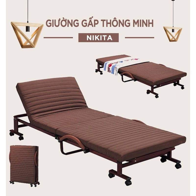 Sản phẩm được thiết kế thông minh với cơ chế gấp gọn 2 khúc, giúp bạn tiết kiệm không gian sống. Khi không sử dụng, bạn có thể dễ dàng xếp giường lại và di chuyển nhờ có bánh xe tiện lợi. Giường gấp Hàn Quốc còn có thể nâng đầu tùy ý, nên bạn có thể thoải mái đọc sách hay xem phim ngay trên giường mà không lo bị khó chịu.