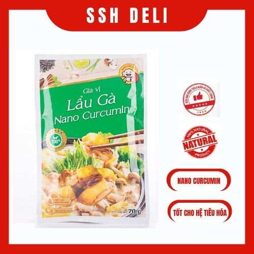 Thành phần gia vị trong gói lẩu gà bao gồm muối, đường, và các chất điều vị, cùng với bột nấm hương và nano curcumin, không chỉ giúp làm dậy lên hương vị mà còn tăng cường giá trị dinh dưỡng cho món ăn. Nước cốt lẩu còn được làm từ hành tây, nghệ, và các loại rau củ tươi, giúp nước dùng thêm phần phong phú và hấp dẫn.