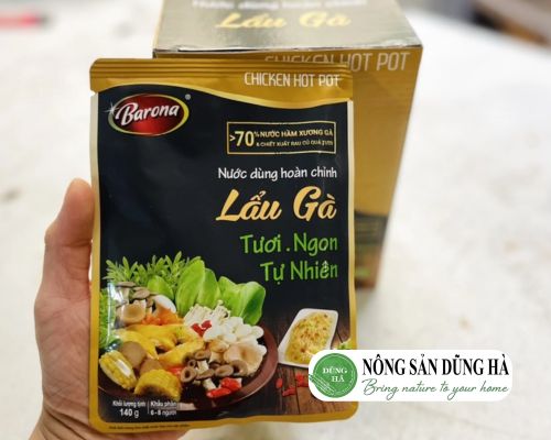 Nước dùng hoàn chỉnh lẩu gà Barona là một lựa chọn lý tưởng cho những ai yêu thích sự tiện lợi. Gói 140g tươi ngon này không chỉ giúp tạo ra hương vị chuẩn mà còn dễ dàng sử dụng, nguề liệu chính chỉ cần chuẩn bị là thịt gà, mì trứng hoặc bún và một ít rau củ tùy thích.