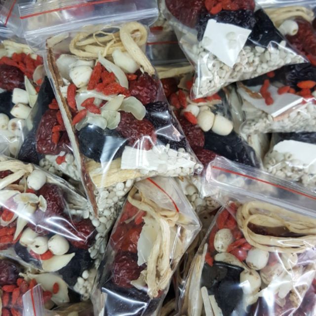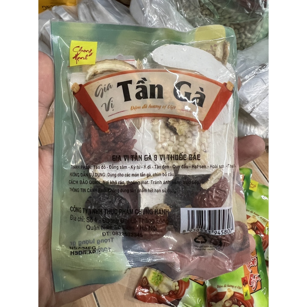 Nguyên liệu trong mỗi gói thuốc bắc hầm gà rất phong phú, bao gồm hạt sen, táo đỏ, kỷ tử, và nhiều thành phần bổ dưỡng khác. Bạn chỉ cần cho gà và gói tiềm vào nồi áp suất, thêm nước và hầm trong 30 phút là có ngay món ăn thơm ngon. Hãy ghé VinMart và trải nghiệm nhé!