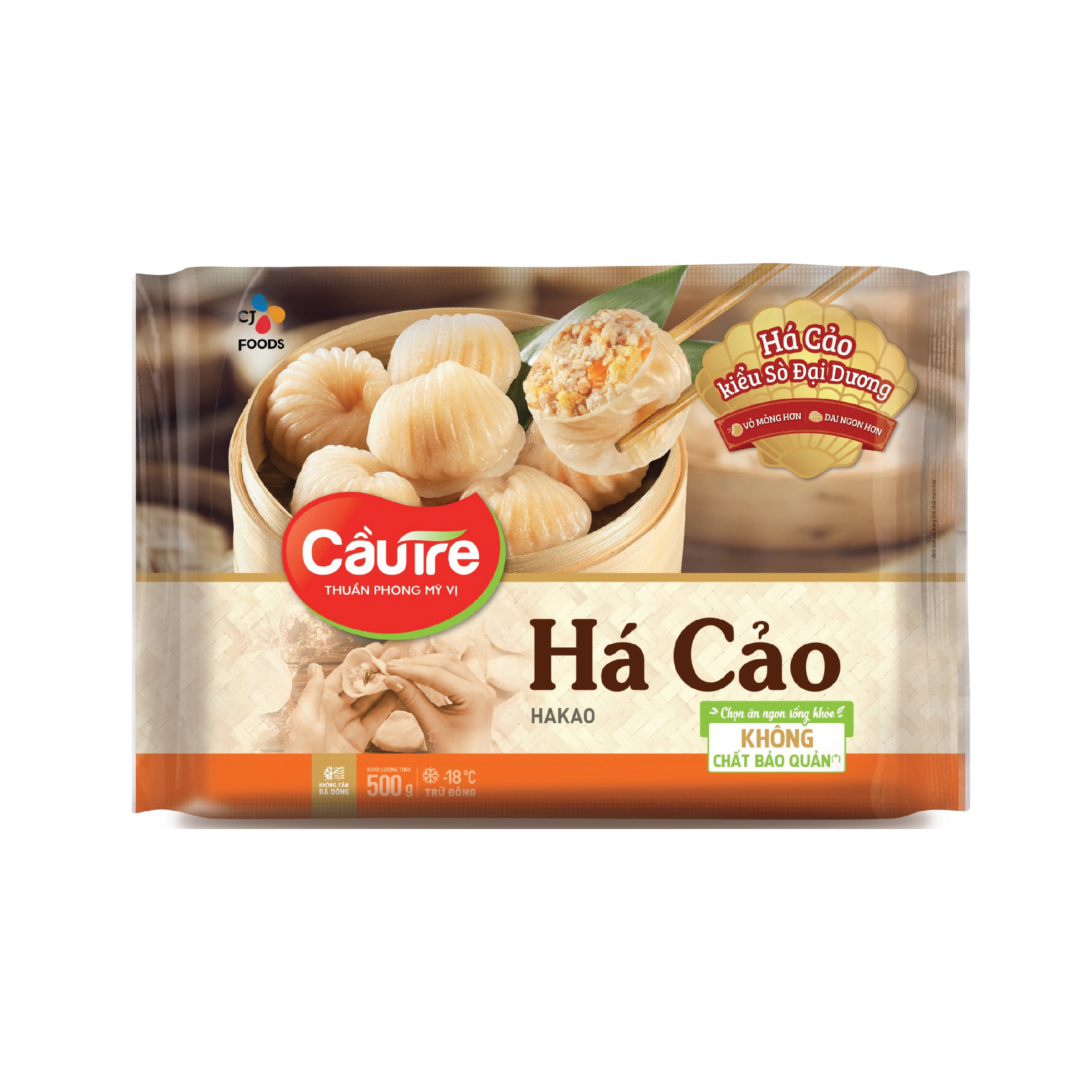 Bột há cảo, chiếm đến 50% thành phần, là sự kết hợp hoàn hảo giữa bột mì và tinh bột khoai, giúp tạo ra lớp vỏ mềm mại bên ngoài. Khi chiên lên, há cảo có màu vàng nhạt hấp dẫn, bên trong là nhân đậm đà từ thịt và hải sản. Đặc biệt, sản phẩm được sản xuất trên dây chuyền hiện đại và được kiểm tra nghiêm ngặt về độ an toàn thực phẩm, mang lại sự yên tâm cho người sử dụng.