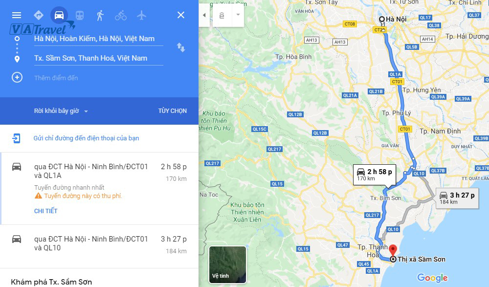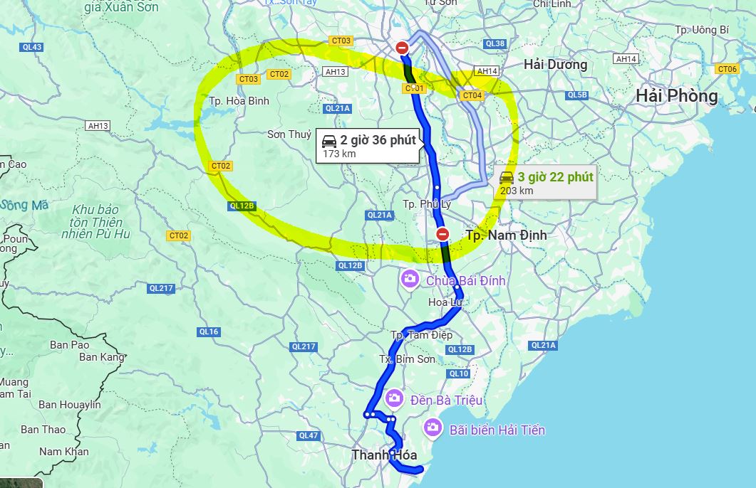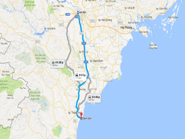 Thời gian di chuyển từ Hà Nội đến Sầm Sơn khá thuận lợi, chỉ mất khoảng 3 giờ 30 phút nếu bạn đi bằng xe khách. Quá trình di chuyển diễn ra trên quãng đường khoảng 170 km, chạy theo cao tốc Hà Nội – Ninh Bình và rẽ vào quốc lộ 1A. Xe chạy nhanh, thoải mái, và có một điểm dừng nghỉ ngắn khoảng 10 phút giữa đường để hành khách có thể thư giãn và giải tỏa.