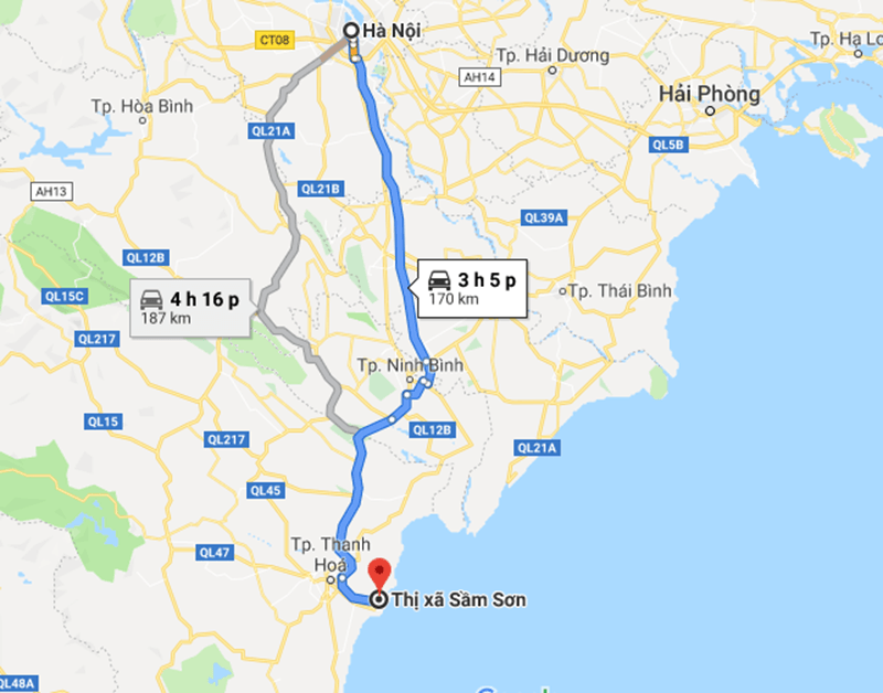 Hà Nội và Sầm Sơn là những điểm đến phổ biến trong các chuyến du lịch ngắn ngày. Khoảng cách từ Hà Nội đến Sầm Sơn dao động từ 160 đến 180 km, tuỳ thuộc vào cung đường bạn chọn. Thường thì, nếu di chuyển theo cao tốc Hà Nội – Ninh Bình và rẽ vào quốc lộ 1A, bạn sẽ mất khoảng 170 km.