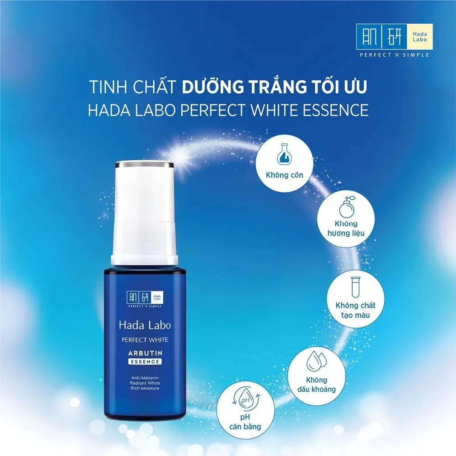 Hada Labo Perfect White Arbutin Essence là một sản phẩm chăm sóc da khá nổi bật với các chiết xuất tự nhiên, hoàn toàn an toàn và không gây kích ứng. Đặc biệt, sản phẩm này phù hợp với mọi loại da, nhất là những ai có làn da thiếu ẩm và không đều màu. Theo beauty blogger Chloe Nguyễn, kem dưỡng này không chỉ cung cấp độ ẩm mà còn giúp bảo vệ da hiệu quả.