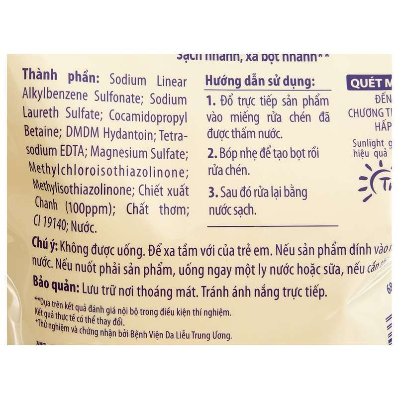 Khi mua nước rửa chén Sunlight, điều quan trọng đầu tiên bạn cần làm là kiểm tra kỹ hạn sử dụng trên bao bì. Hạn sử dụng giúp đảm bảo sản phẩm còn giữ được chất lượng và hiệu quả làm sạch tốt nhất, tránh mua phải hàng hết date hoặc gần hết hạn gây lãng phí và giảm tác dụng.
