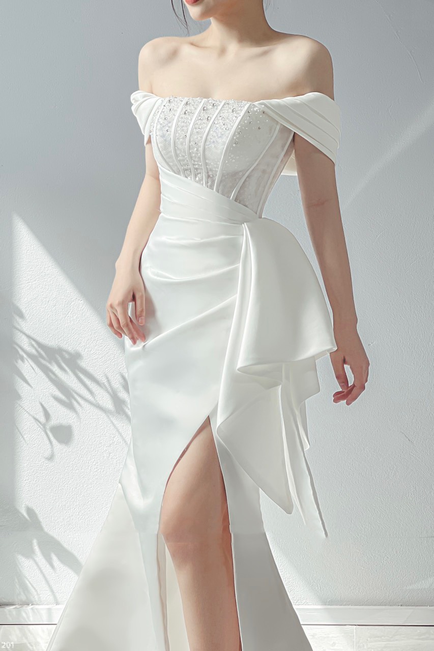 Đầm đuôi cá thường là lựa chọn ưu tiên cho các bữa tiệc đặc biệt như đám cưới. Với thiết kế ôm vừa vặn, chiếc đầm này giúp khoe trọn các đường cong quyến rũ, cùng với bờ vai thanh mảnh đầy gợi cảm. Khi tham dự một đám cưới, bạn có thể kết hợp đầm với các phụ kiện như trang sức tinh tế, túi xách sang trọng và giày cao gót để tạo điểm nhấn ấn tượng cho bộ trang phục của mình.