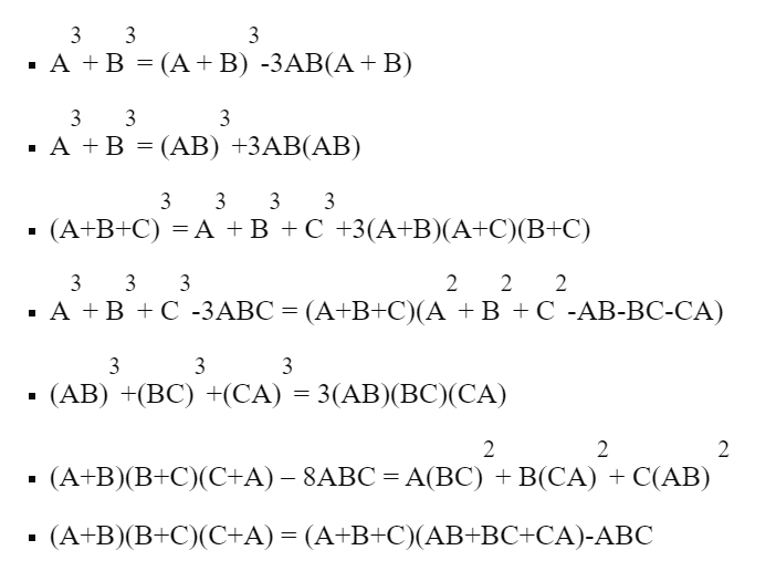 Ngoài ra, tổng của hai lập phương \( A^3 + B^3 \) có thể được viết dưới dạng \( (A + B)(A^2 – AB + B^2) \), điều này cho phép chúng ta nhanh chóng tìm ra kết quả mà không cần phải tính từng phần riêng lẻ. Những hằng đẳng thức này không chỉ có giá trị lý thuyết mà còn mang lại những ứng dụng thiết thực trong nhiều lĩnh vực toán học khác nhau.