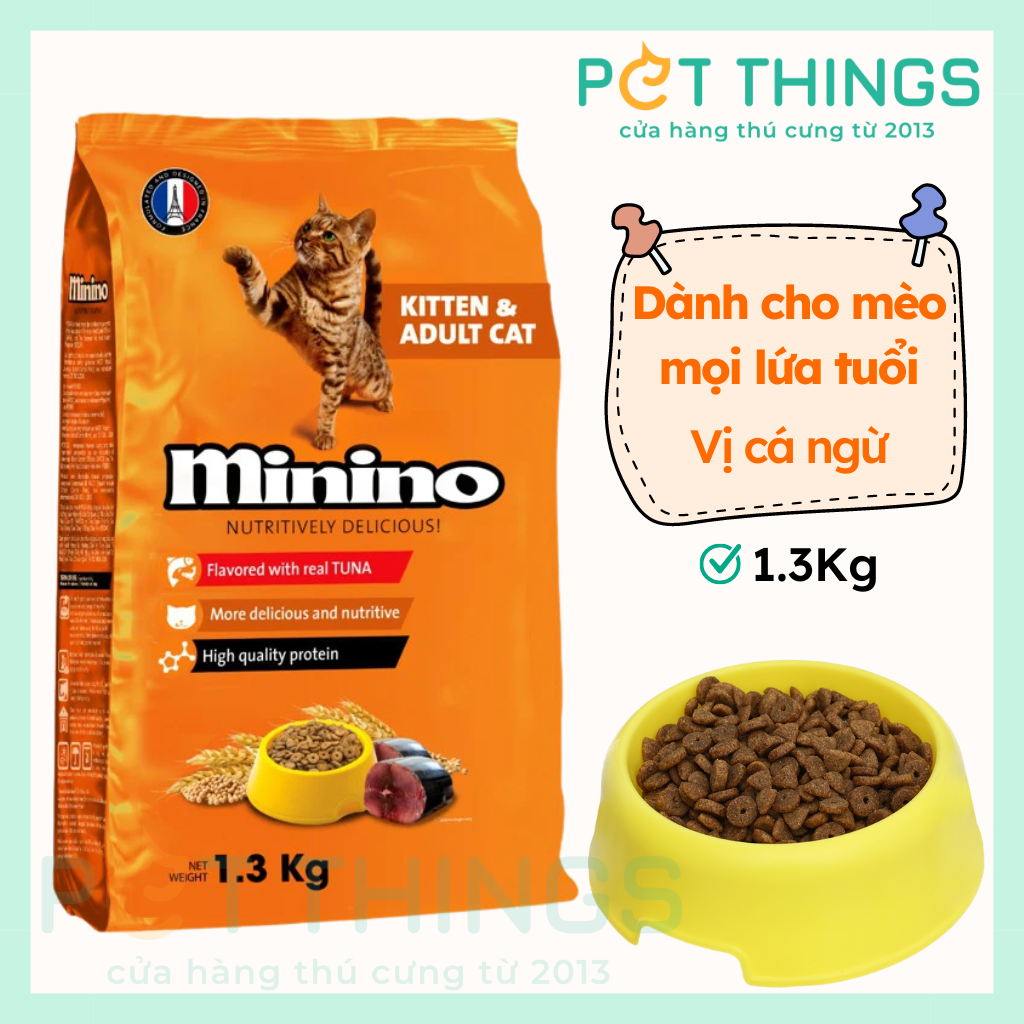 Nếu boss nhà bạn kén ăn, thử Minino hay Me-O nhé, mùi cá đậm đà, hạt nhỏ dễ nhai, giá rẻ mà vẫn đầy đủ dưỡng chất cho tiêu hóa và miễn dịch.