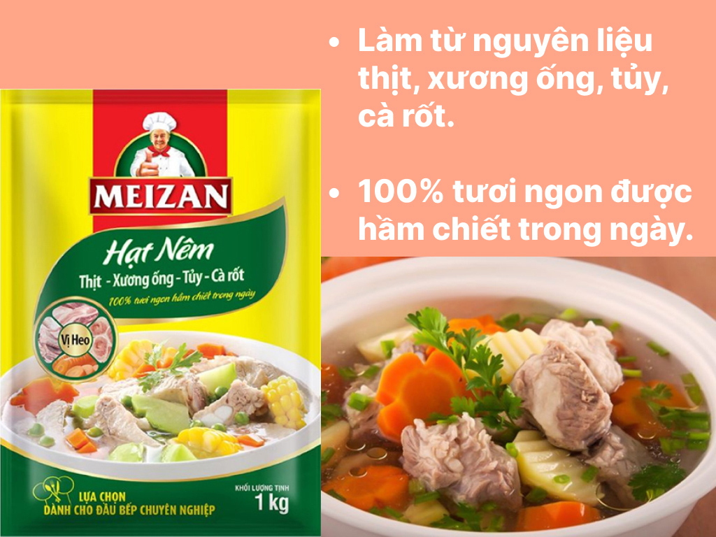 Ngoài hạt nêm Meizan, hạt nêm chuẩn vị thịt cũng được nhiều người yêu thích với giá chỉ từ 16.000đ cho 200g. Rõ ràng, với nhiều lựa chọn giá cả và hương vị, bạn có thể dễ dàng tìm thấy sản phẩm phù hợp với nhu cầu nấu nướng của gia đình mình.