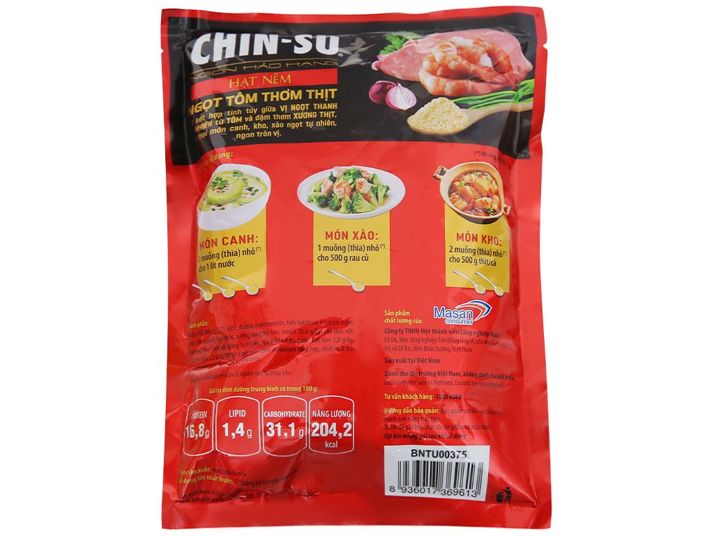 Hạt nêm Chinsu 1kg là lựa chọn quen thuộc trong nhiều gia đình Việt, được đa số người tiêu dùng đánh giá cao nhờ chất lượng vượt trội. Sản phẩm được làm từ tinh bột khoai mì, nước cốt xương thịt, mang lại vị ngọt tự nhiên cho các món ăn, từ canh đến xào, kho. Với giá khoảng 51.500 đồng cho 1kg, hạt nêm Chinsu không chỉ dễ tìm mà còn rất tiện lợi cho việc chế biến món ăn hàng ngày.