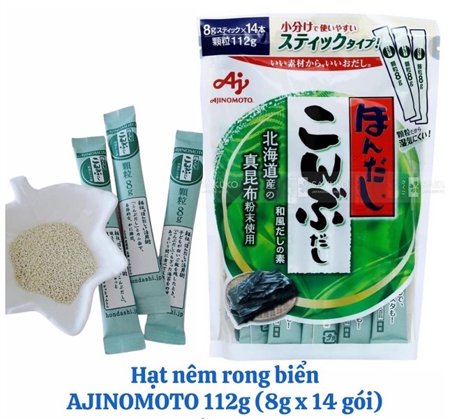 Hạt nêm rong biển Ajinomoto là một sản phẩm tuyệt vời giúp mẹ bớt vất vả trong việc nêm nếm. Được chiết xuất hoàn toàn tự nhiên từ rong biển Kombu nổi tiếng tại vùng biển Hokkaido, hạt nêm này mang đến vị ngọt đặc trưng và hương vị thơm ngon cho các món ăn hàng ngày.
