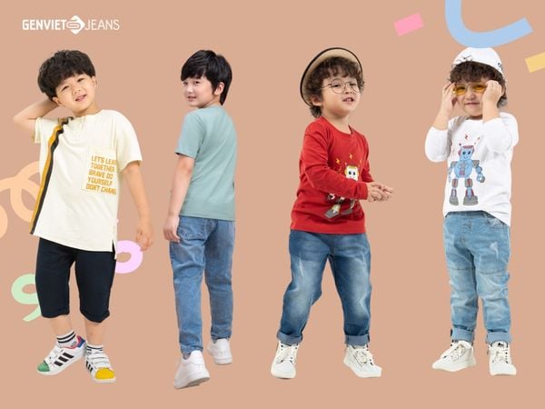 Thời trang bé trai hiện nay ngày càng đa dạng và phong phú, đáp ứng nhu cầu phát triển phong cách cá nhân của các bé. Một trong những kiểu phối đồ phổ biến là áo thun kết hợp với quần jeans, mang lại sự năng động và thoải mái cho bé. Chất liệu mềm mại của áo thun cùng với độ bền của quần jeans tạo nên bộ trang phục lý tưởng cho những buổi dạo chơi hay hoạt động thể thao.