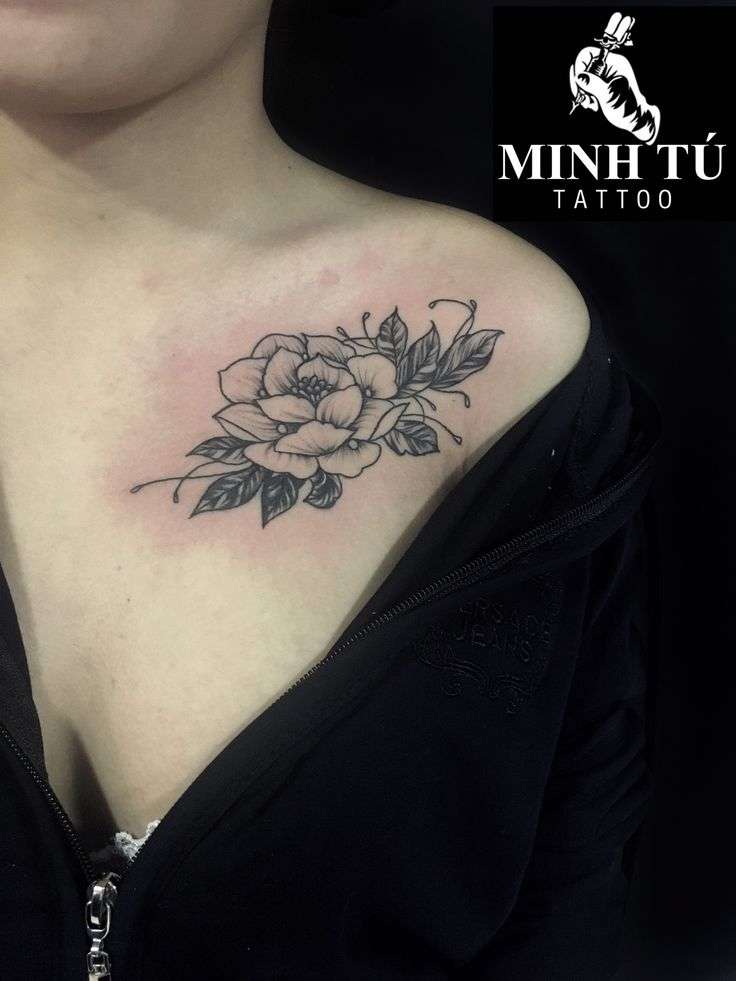 Ngoài ra, vai và xương quai xanh cũng là những điểm xăm hoa mẫu đơn mini rất được ưa chuộng. Đây là những vị trí gợi cảm, giúp tôn lên nét duyên dáng và sự sang trọng của phái đẹp. Hình xăm ở vai hay xương quai xanh thường được chọn để thể hiện sự quý phái, thanh lịch mà vẫn rất quyến rũ.