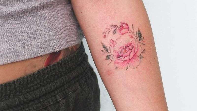 Xăm hoa mẫu đơn mini tinh tế trên cánh tay