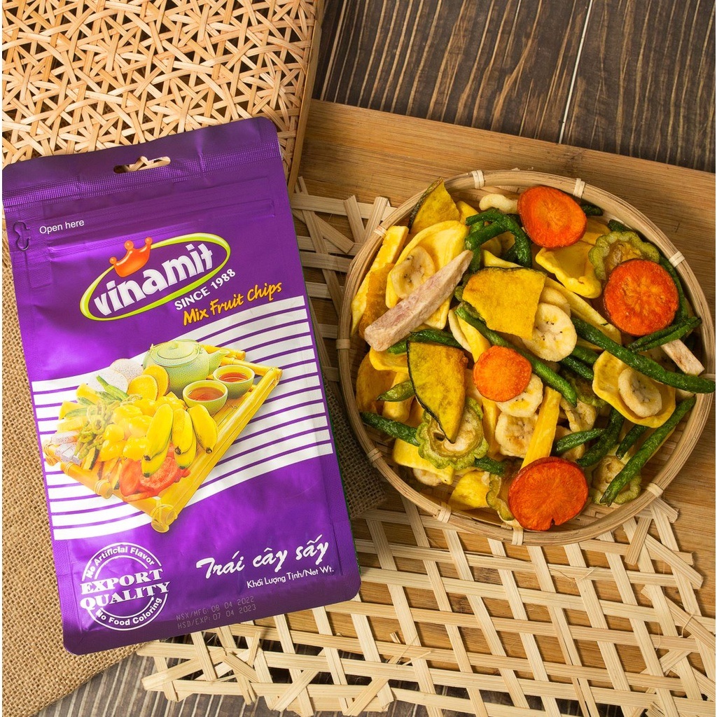 Trái cây sấy khô Vinamit đã trở thành một trong những món ăn vặt được yêu thích nhất hiện nay. Với đa dạng các loại trái cây như mít, chuối, khoai lang, dứa, và nhiều loại khác, Vinamit mang đến cho người tiêu dùng một hương vị tự nhiên dễ chịu, đảm bảo sức khỏe và an toàn.