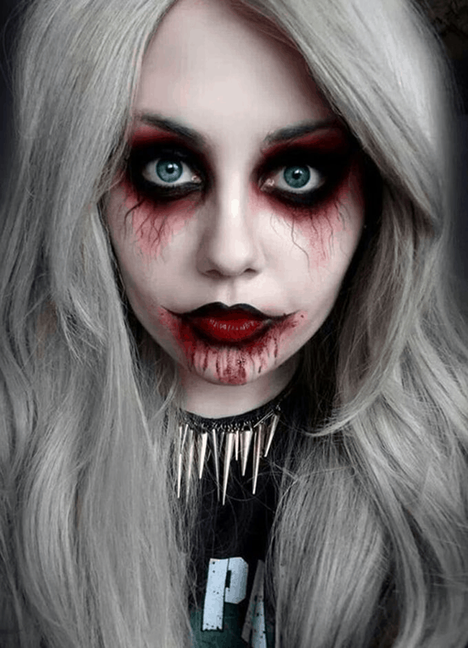Nếu bạn muốn một phong cách ma mị hơn, hóa trang thành ma cà rồng là một ý tưởng không tồi. Sử dụng mực đỏ để tạo nên gương mặt trắng toát đầy bí ẩn sẽ khiến bạn nổi bật giữa đám đông. Đừng quên chọn cho mình những trang phục như áo choàng đen hoặc mũ phù thủy để hoàn thiện diện mạo.
